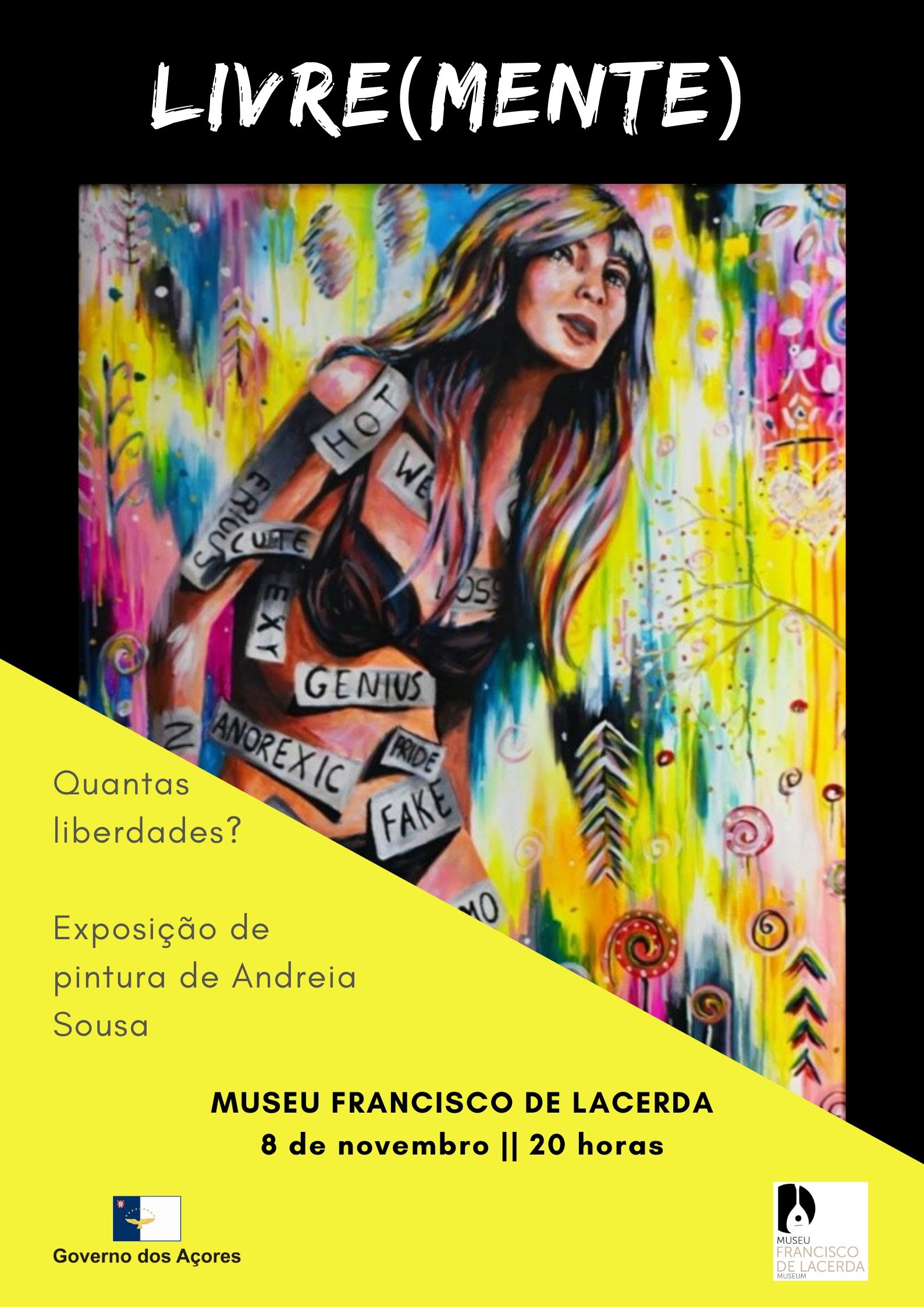 A Direção Regional da cultura, através do Museu Francisco de Lacerda, apresentará no dia 8 de novembro, pelas 20 horas, a exposição de pintura Livre(mente) de Andreia de Sousa.
