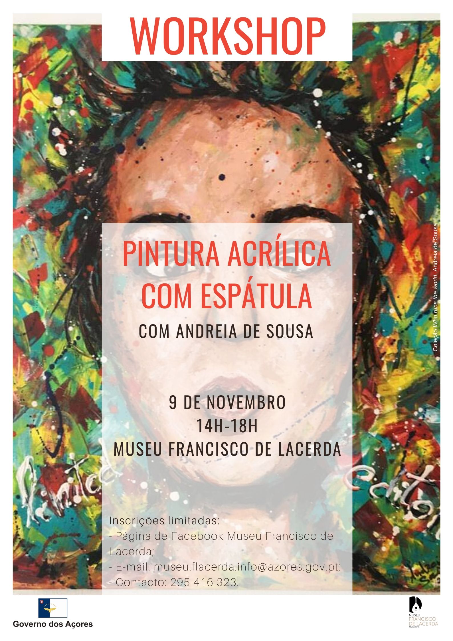 No âmbito da exposição Livre(mente), a artista Andreia de Sousa desenvolverá no Museu Francisco de Lacerda um workshop de pintura acrílica com espátula, no dia 9 de novembro, das 14 horas às 18 hora.