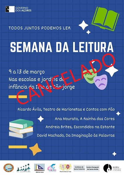 Depois do sucesso alcançado em 2018 e em 2019, a terceira edição da Semana da Leitura decorrerá de 09 a 13 de março de 2020, junto das três unidades orgânicas do sistema educativo regional da ilha de S. Jorge, estendendo-se aos jardins de infância, O Roseiral, o Golfinho, do Instituto de Santa Catarina e do Centro Paroquial de Santo Antão e incidindo especificamente nos alunos da Educação Pré Escolar e do Ensino Básico, numa plena integração com o projeto do Governo dos Açores “ProSucesso”, bem como exponenciado o desiderato da politica cultural da Região Autónoma dos Açores, na vertente da leitura.