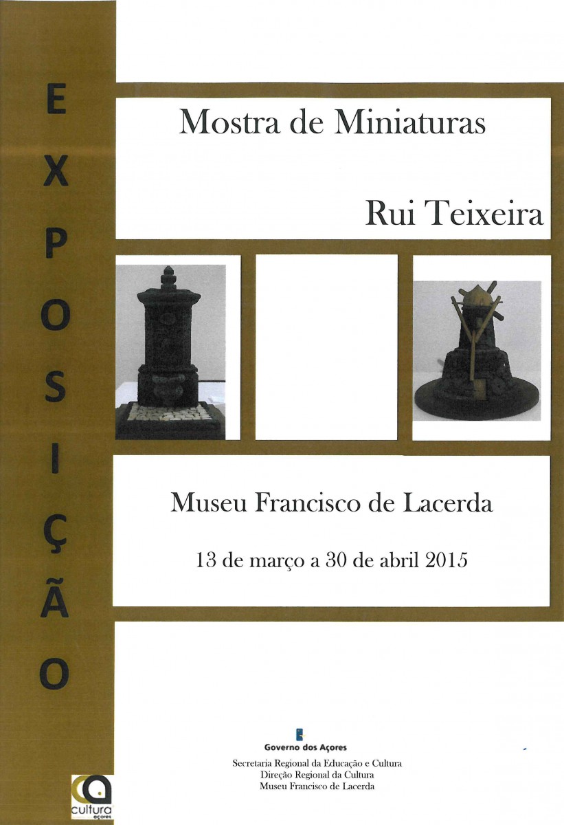 A Direção Regional da Cultura, através do Museu Francisco Lacerda, em S. Jorge, promove sexta-feira, 13 de março, a abertura de uma “Mostra de Miniaturas”, da autoria de Rui Teixeira.