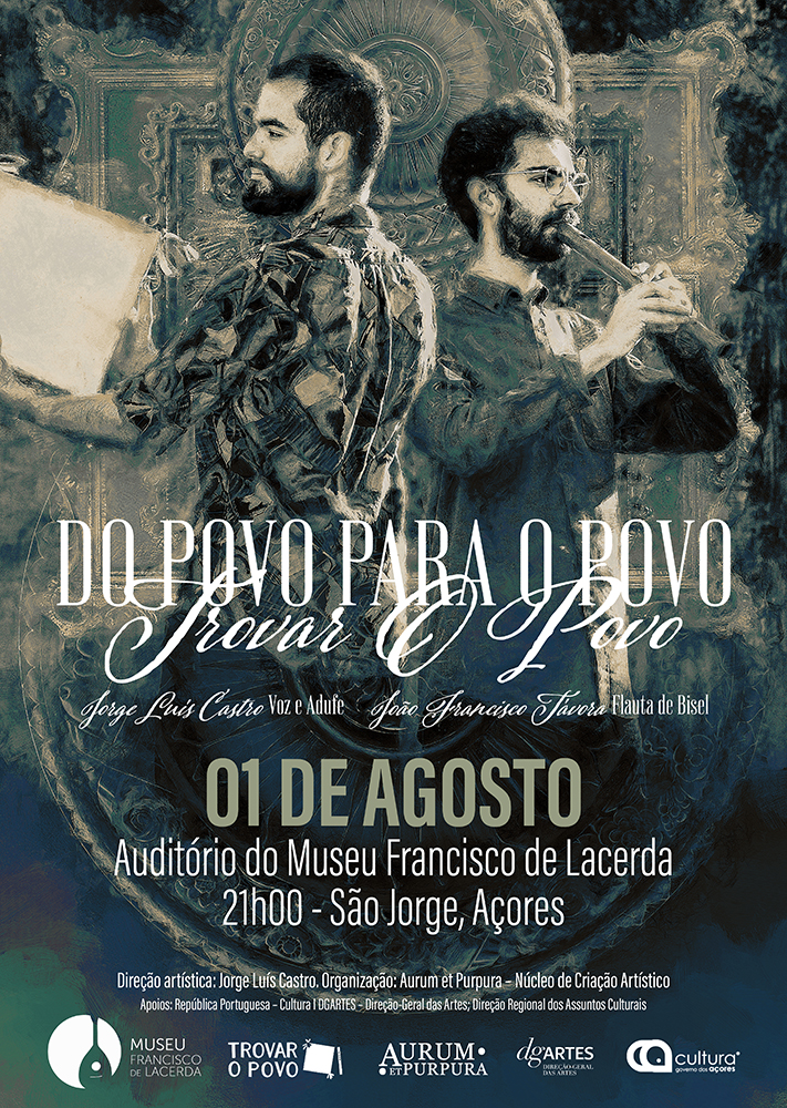 No programa “Do Povo para o Povo” propõe-se apresentar um concerto que parte das recolhas etnográficas do folclore português, interpretando e reinventando-as num novo objeto artístico que une a interpretação etnográfica e histórica à criação e recriação musical. Para isso o projeto conta com a voz de Jorge Luís Castro para interpretar a palavra do povo, a flauta de bisel de João Francisco Távora para relembrar a sonoridade dos instrumentos solísticos e o adufe de Jorge Luís Castro para reavivar os ritmos e as danças do ambiente sonoro português. Será feito um pequeno comentário, entre cada um dos capítulos, de forma a situar histórica e etnograficamente a variedade ritualística da cultura tradicional portuguesa.