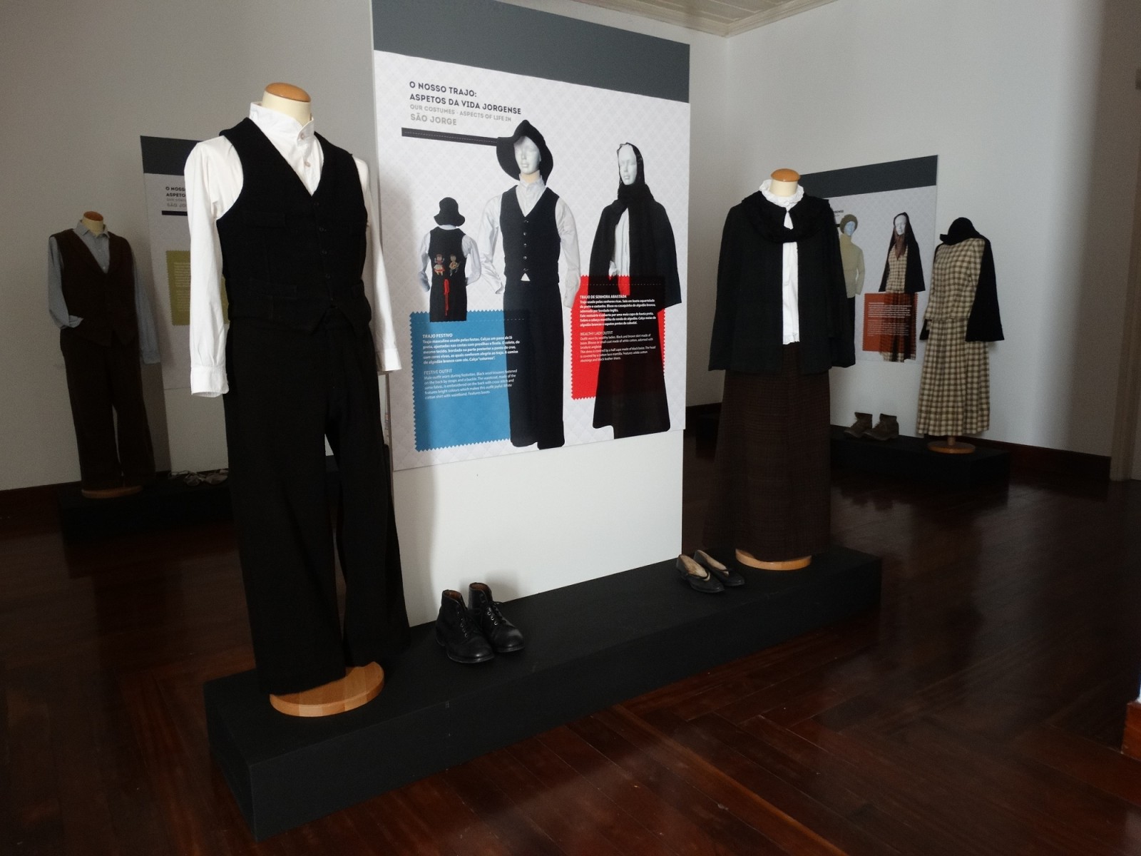 Os trajes aqui expostos, fiéis reproduções dos originais, confecionados apenas com materiais dos teares da Ilha, nomeadamente lã e baeta, resultam de um exaustivo trabalho de pesquisa e recolha levado a cabo pelo Grupo Etnográfico da Calheta, da ilha de São Jorge, fundado em 1979, atualmente desativado. Esta seleção de peças faz parte da indumentária do grupo, em depósito nesta instituição.
