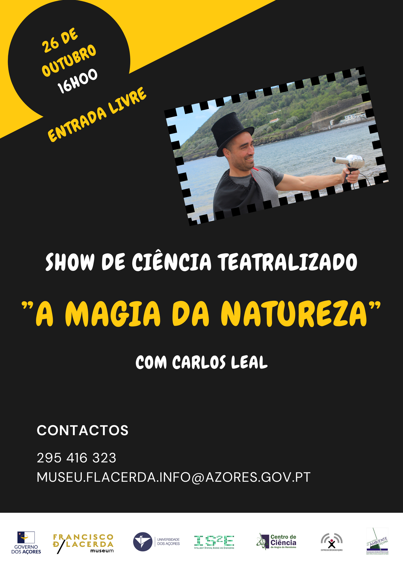 O Centro de Ciência de Angra do Heroísmo apresentará este espetáculo no Museu Francisco de Lacerda no dia 26 de outubro, pelas 16h00.