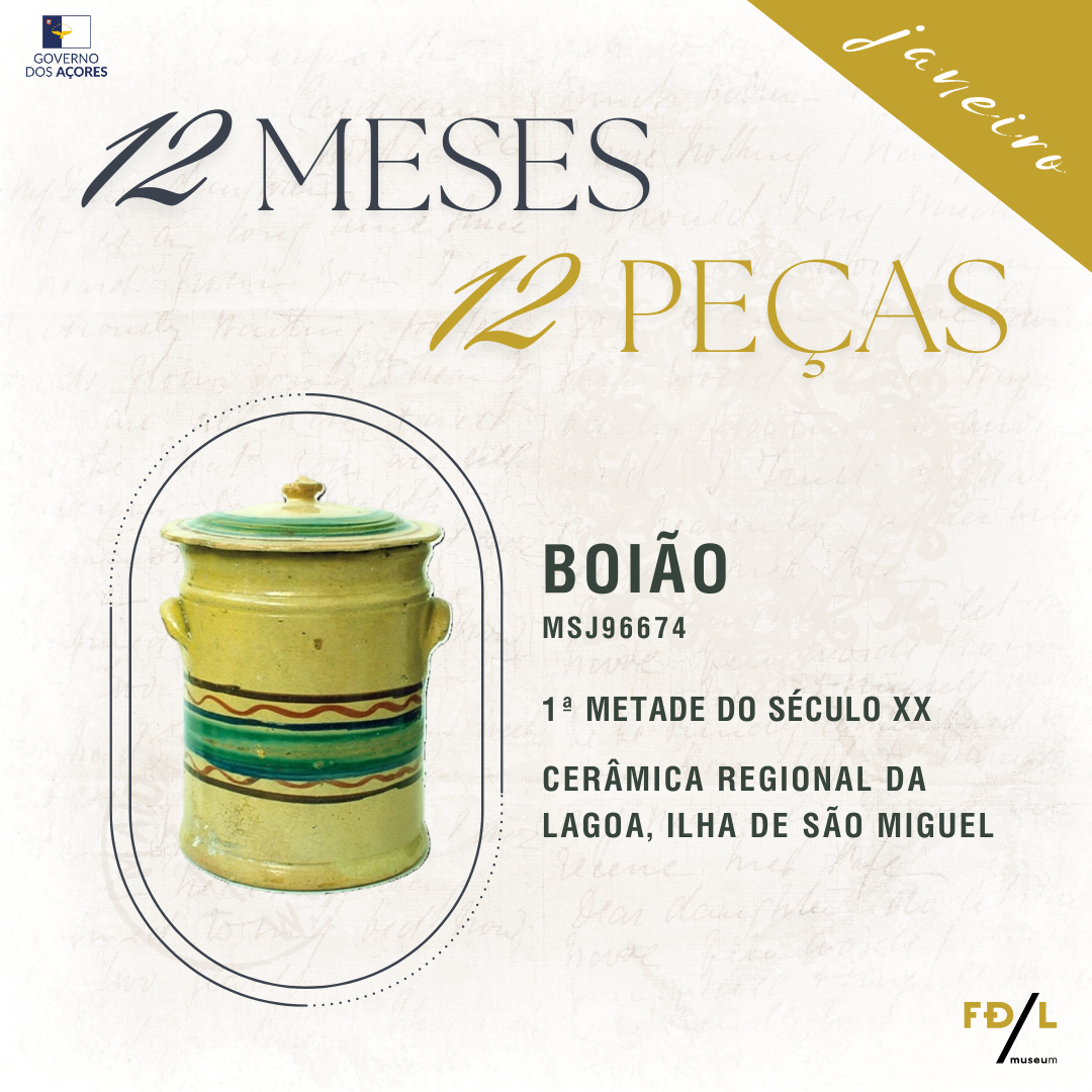 Descrição: objeto de barro vidrado e pintado, utilizado para armazenar provisões de banha, conservar torresmos e enchidos de porco.