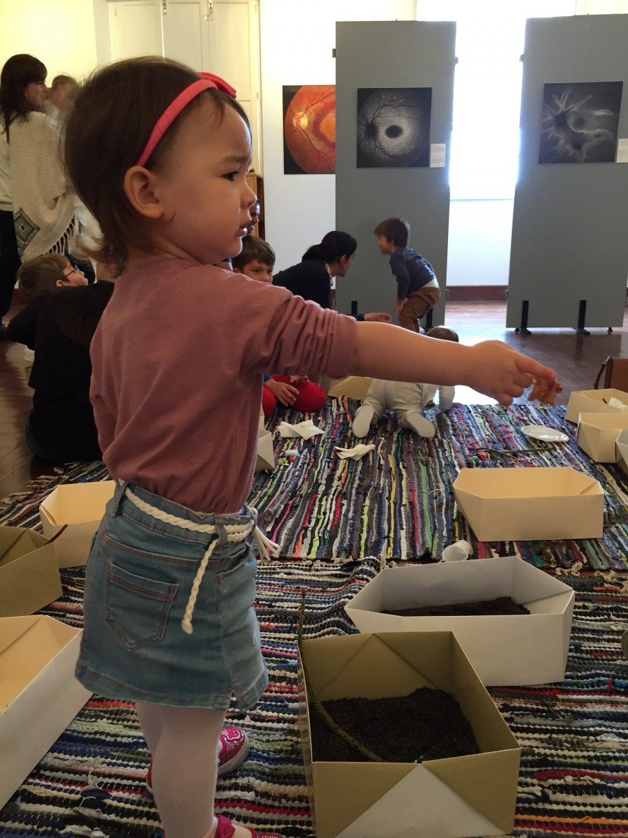 Esta oficina parte do sentido da visão, da exposição Visões, e convida-nos a explorar outros sentidos. O espaço do museu transforma-se num local de descoberta e exploração sensorial. Texturas, formas, cheiros, luzes, cores e movimentos, dão lugar a um puzzle sensorial que se constrói em família.