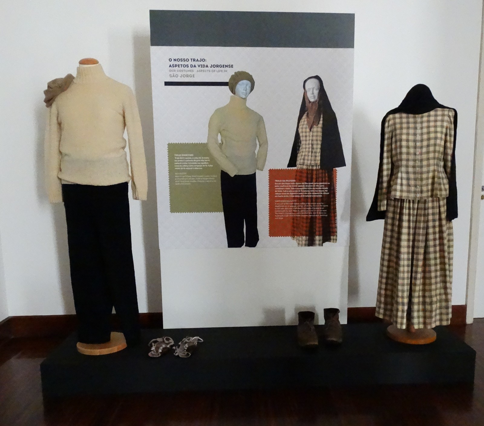 Os trajes aqui expostos, fiéis reproduções dos originais, confecionados apenas com materiais dos teares da Ilha, nomeadamente lã e baeta, resultam de um exaustivo trabalho de pesquisa e recolha levado a cabo pelo Grupo Etnográfico da Calheta, da ilha de São Jorge, fundado em 1979, atualmente desativado. Esta seleção de peças faz parte da indumentária do grupo, em depósito nesta instituição.